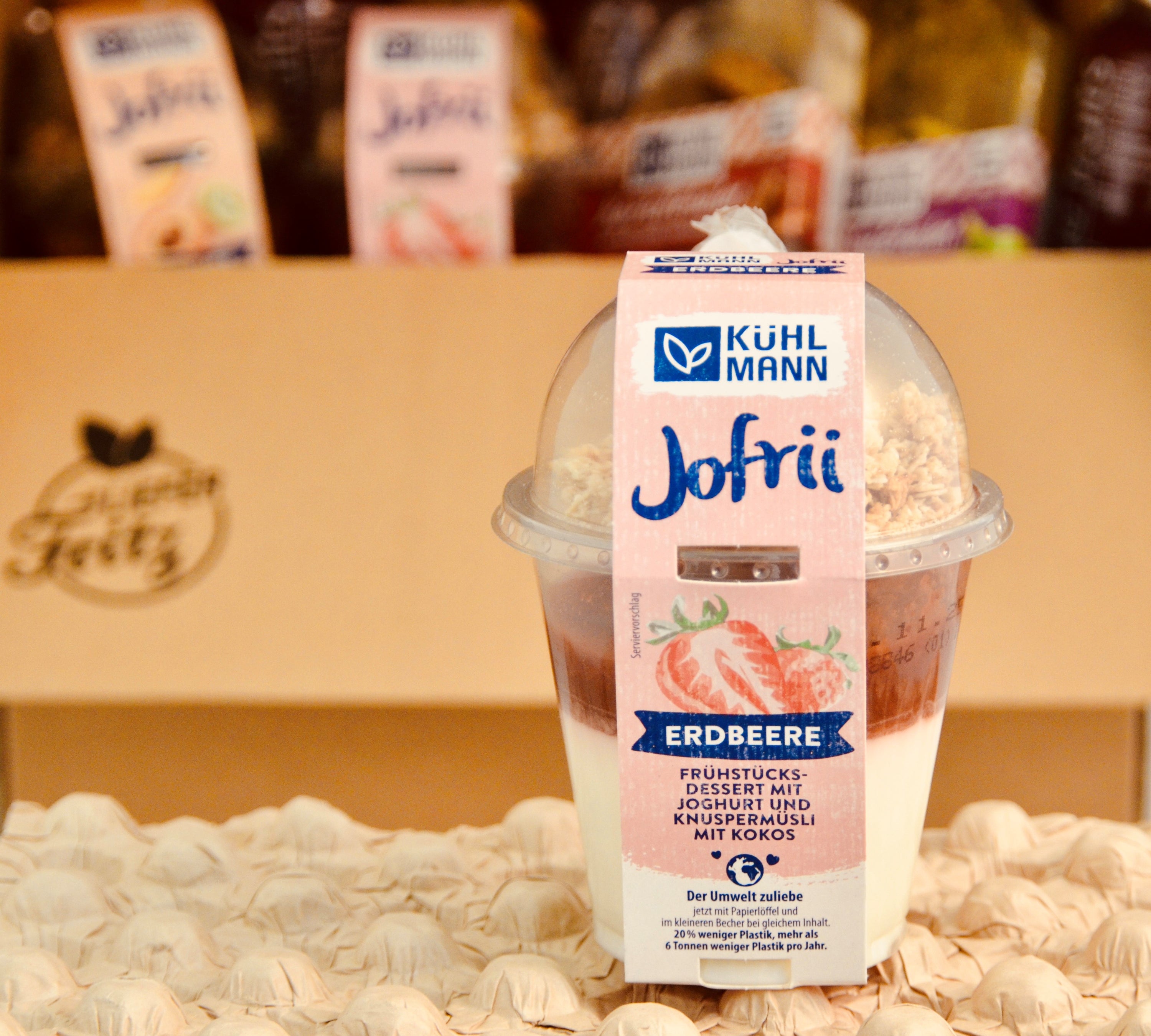 - 3 x Jofrii Joghurt mit Erdbeer Grütze und Müsli (je 285g Inkl. Löffel)